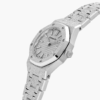 Inspired by the Mini Oak of 1997, this 23 mm contemporary interpretation features an 18-carat white gold case and bracelet decorated with Frosted Gold and set off by a tone-on-tone Petite Tapisserie dial. It is powered by quartz Calibre 2730.