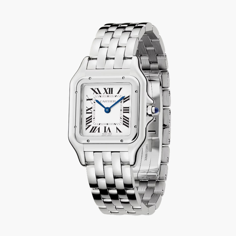Designed in the 1980s, the Panthère de Cartier watch takes its name from the bracelet of the same name. Its ultra-flexible structure echoes the movements of the Maison’s emblematic animal. Both a watch and a piece of jewelry, it is a veritable fashion icon for women with bold style.