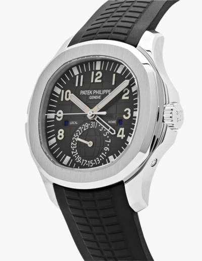 Conquer every time zone in style. The Patek Philippe Aquanaut Travel Time 5164A for men pairs a sleek stainless steel design with a complication built for global adventures. This luxurious timepiece keeps you on top of the world, wherever you roam.