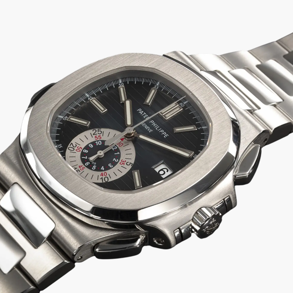 The Patek Philippe Nautilus 5980/1A is the stainless-steel Nautilus chronograph reference, known for its balanced dial architecture and integrated-bracelet design. At 40.5mm, it wears as a true luxury sports watch with lasting collectability. Offered pre-owned (2010), the 5980/1A remains a benchmark for steel chronographs in the high-end segment.