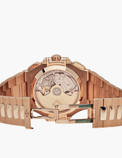 The Patek Philippe Nautilus Chronograph 5980/1R-001 combines the Nautilus’ sport-luxury profile with a highly wearable flyback chronograph. The watch features a rose gold case with a black dial and Patek’s signature chronograph layout using a 60-minute and 12-hour monocounter for fast readability, plus date display. Inside is the Patek CH 28-520 C self-winding chronograph movement (flyback), built for both daily use and collector appeal.